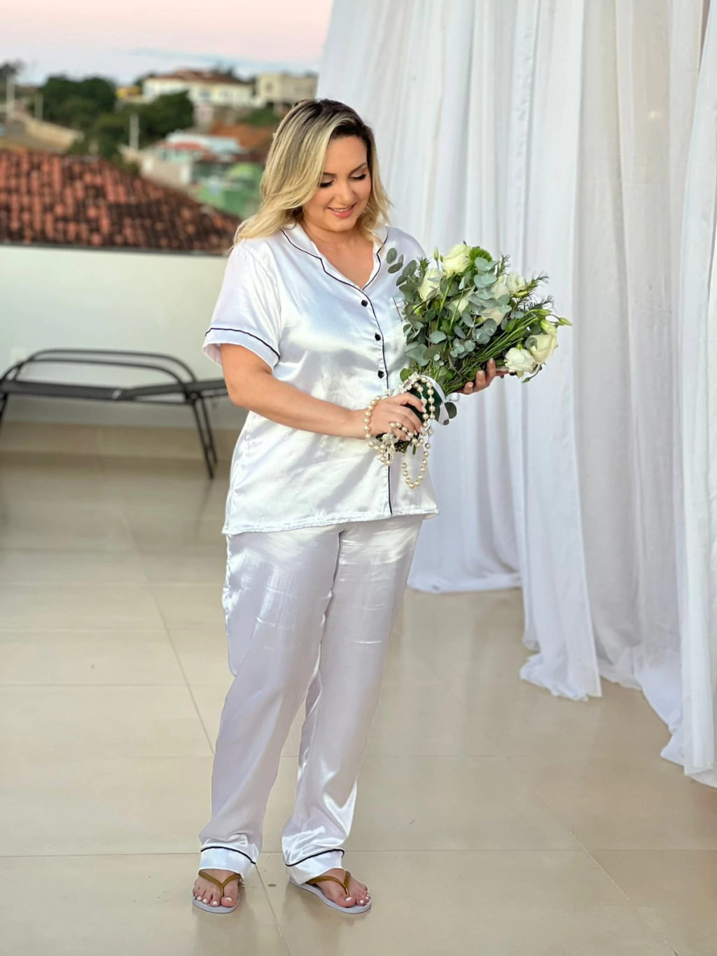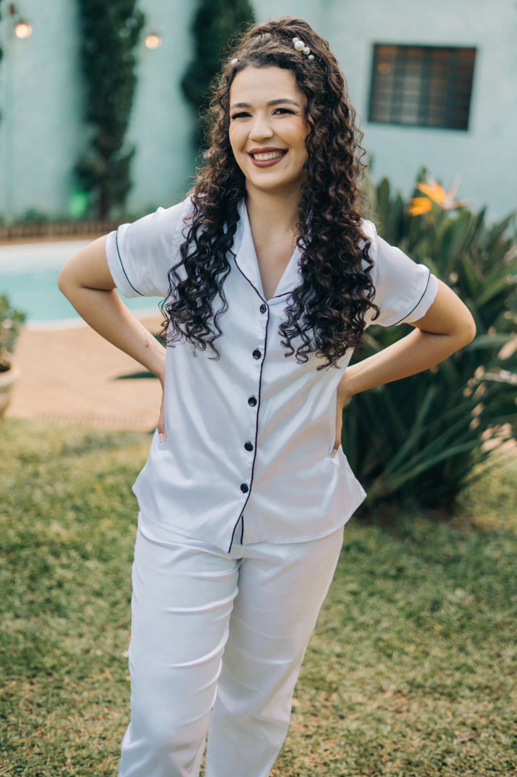 Pijama Americano Cetim Personalizado - Manga Curta e Calça
