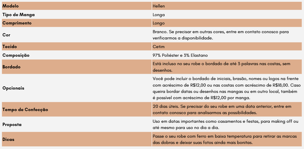 Eleve seus momentos de descanso com a delicadeza e o conforto do Robe Hellen — a peça que faltava para seu guarda-roupa de luxo íntimo.