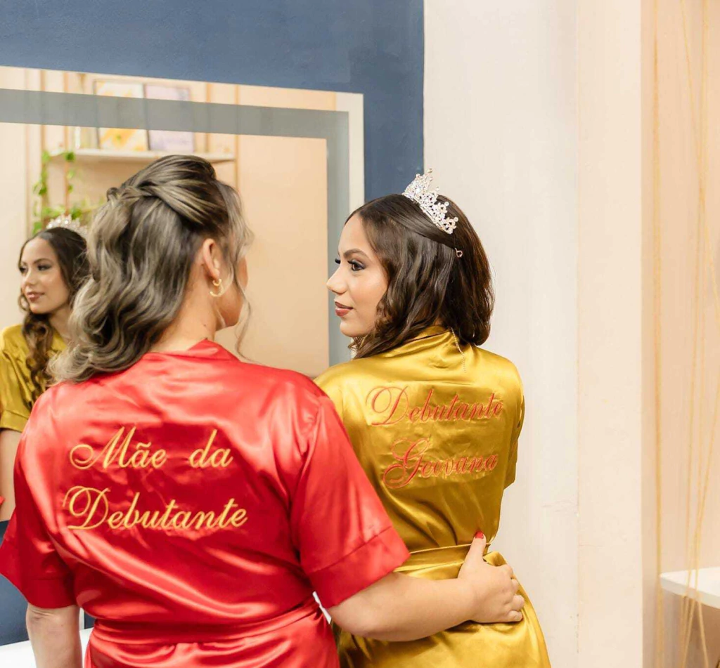 Eleve seus momentos de descanso com a delicadeza e o conforto do Robe Isabela — a peça que faltava para seu guarda-roupa de luxo íntimo.