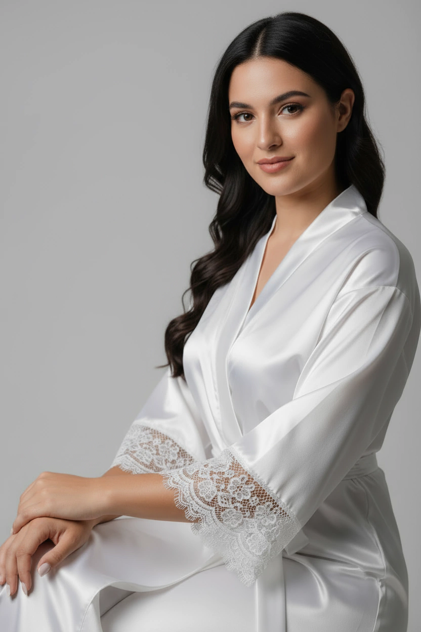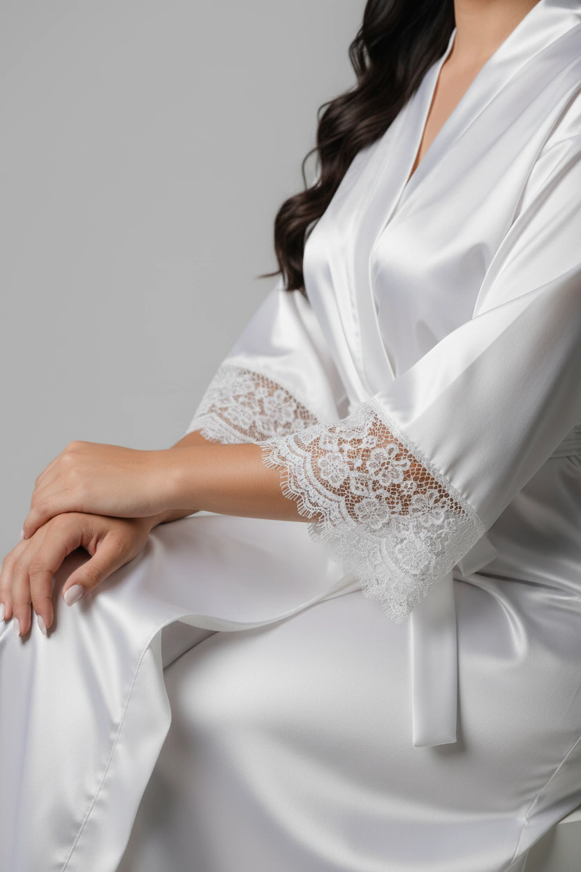 Eleve seus momentos de descanso com a delicadeza e o conforto do Robe Thayssa — a peça que faltava para seu guarda-roupa de luxo íntimo.