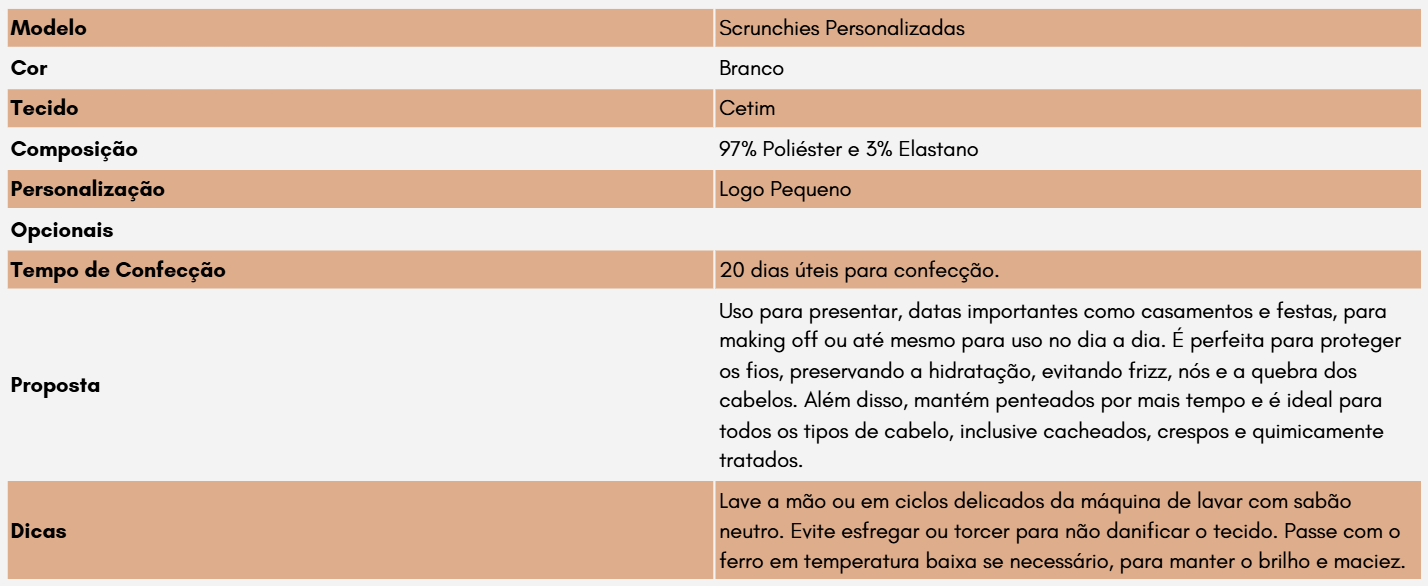 Realce seus penteados com a delicadeza e o conforto das Scrunchies de Cetim Personalizadas — o toque final que faltava para seu visual com elegância e praticidade.