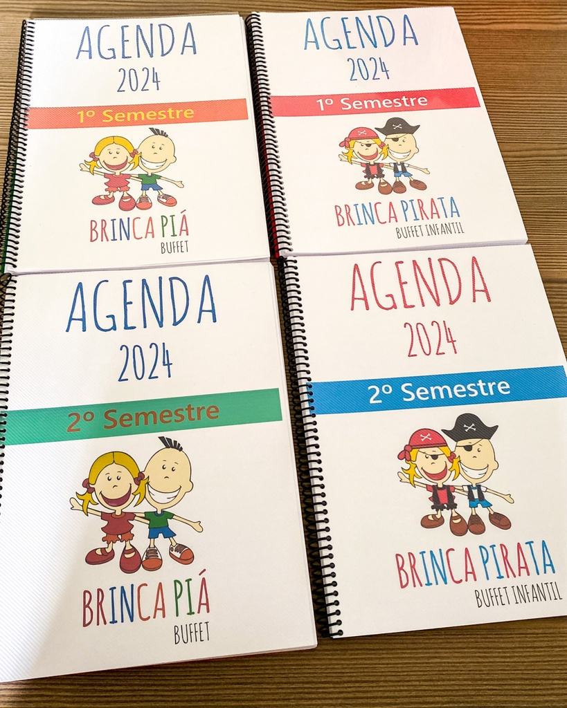 A nossa agenda personalizada pensada nos buffets é feita no tamanho A4, para melhor aproveitamento das especificações do evento.